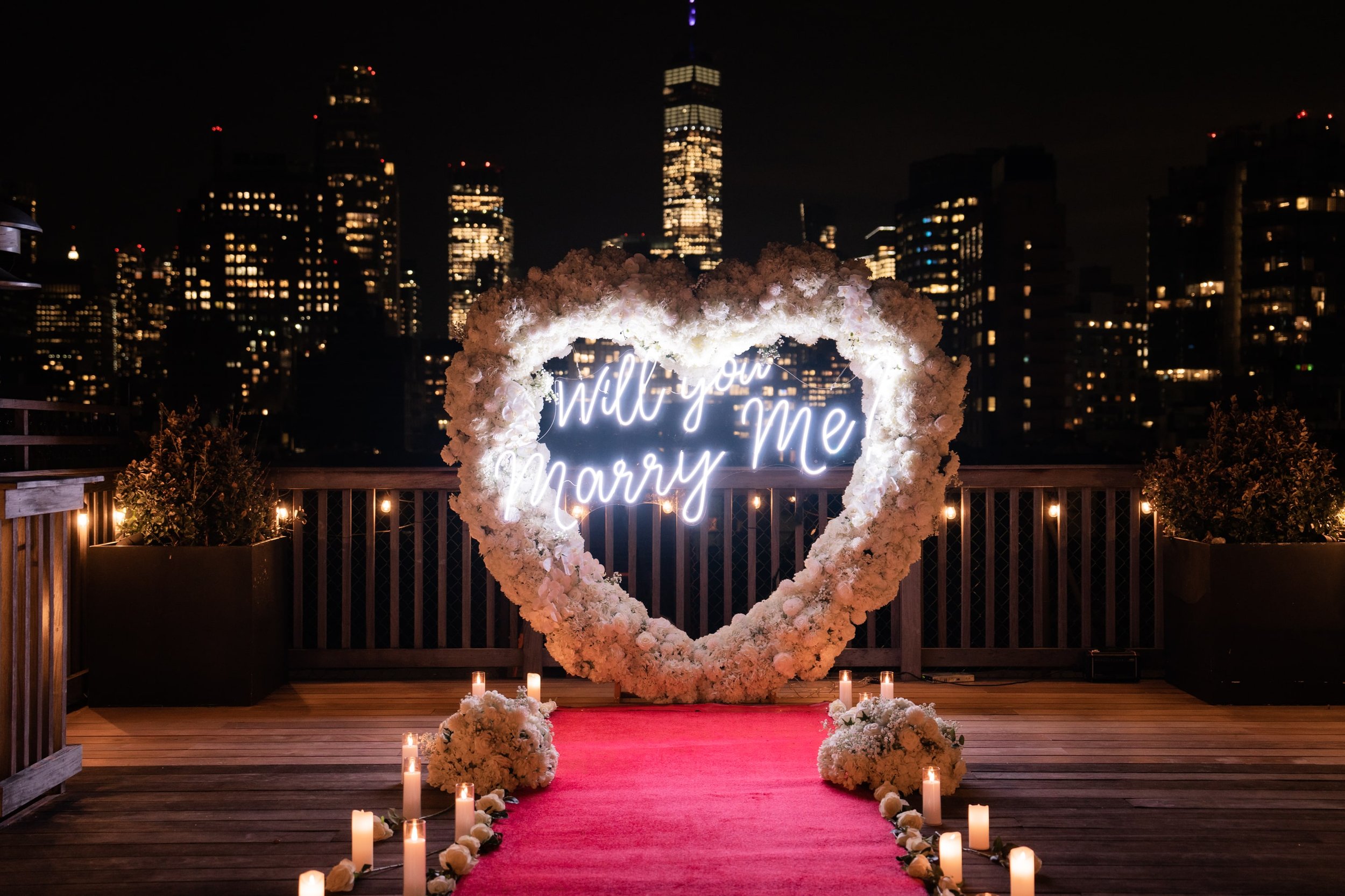 All of our packages include rental, setup, and take-down. Our decor packages enhance the look of any setting and serve as a necessity for any proposal. The best surprises are the ones that are least expected. If you are coming to New York City or simply booking a hotel, your future fiancé will least expect you to transform the room into a place fitted for a proposal! Final price is determined based on location.